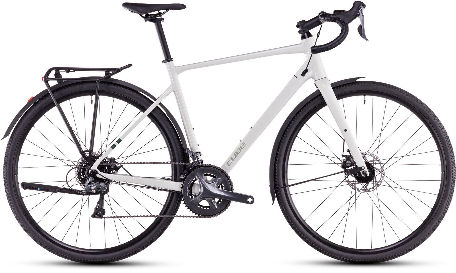 Una bicicletta è già di per sé super versatile, ma la Cube Nuroad ONE FE fa un ulteriore passo avanti. È dotata di serie di parafanghi, portapacchi, un pratico cavalletto e un sistema di illuminazione per garantire sicurezza, supporto e visibilità al top.