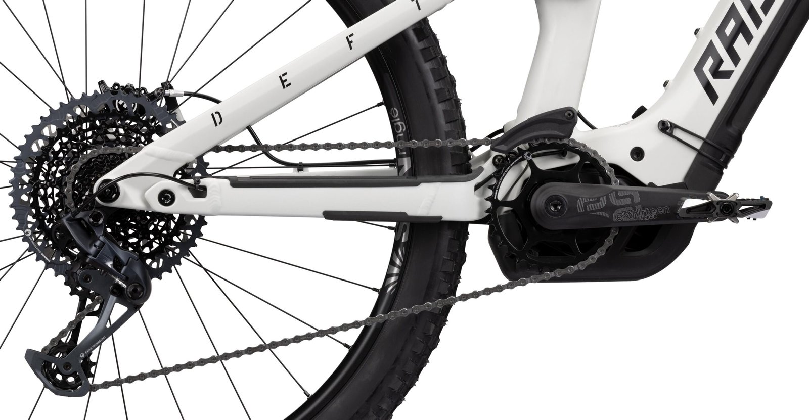 With the latest generation Bosch Performance CX drive unit including Smart System you have the currently most powerful Bosch drive on board. Thanks to the modular system you have countless combination options regarding displays and control units. A massive 85Nm of torque and up to 340% pedal assistance let you fly up the mountain or provide light modulating support – four riding modes are available. Understatement pure out of the box: with the Bosch Mini Remote you have a clean solution in conjunction with the Bosch System Controller integrated into the top tube so you can fully concentrate on trail surfing. To have enough power for extended trail tours, we equipe our DEFT 9.0 with the large 750Wh Powertube battery – elegantly integrated into the down tube. The modern carbon main frame allows a suspension travel of 170mm at the front and rear. At the front, the Fox 38 Performance Elite fork with FIT GRIP2 cartridge is always by your side. Thanks to the revolutionary design of the GRIP2 cartridge, all damping parameters are independently adjustable. High- and low-speed rebound bring control for every rider’s weight, the tuning options of the high- and low-speed compression are widely adjustable to any riding style. The Fox Float X Performance Elite 2-Pos. rear shock convinces even in the toughest terrain. For shifting, we rely on a mix of SRAM’s 12-speed NX and GX Eagle series. The large 10-52 teeth cassette offers you a huge range with crisp shifting and an extremely high reliability. If you ever need to catch the braking point in fast passages, you can fully rely on the biting Magura MT5 brake with four pistons at the front and rear – fine dosing and extreme stablility on steep trails have made this brake the favorite of many customers in recent years. The SUNringlé Düroc SD37 Expert wheelset with 32mm inner rim width accommodates the Maxxis Assegai at the front and the Maxxis DHR II at the rear – one of THE tire combos in the enduro sector with grip en masse in all conditions. So that the trail fun reaches the maximum, we install a dropperpost and a chic Race Face Turbine R cockpit. With the DEFT 9.0 750 you have already found your dream bike!